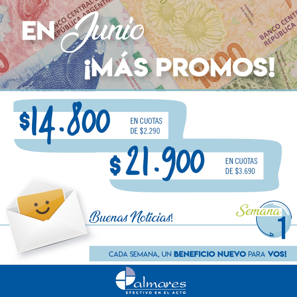 El mes de junio, luego de tres meses de pandemia, Palmares llevó adelante una promoción muy especial: "4 Semanas - 4 Buenas Noticias". Conscientes de la importancia que tenía para la comunidad contar con novedades positivas en medio del ambiente adverso, se propuso una acción en la cual durante 4 semanas ofrecimos beneficios especiales a nuestros clientes.