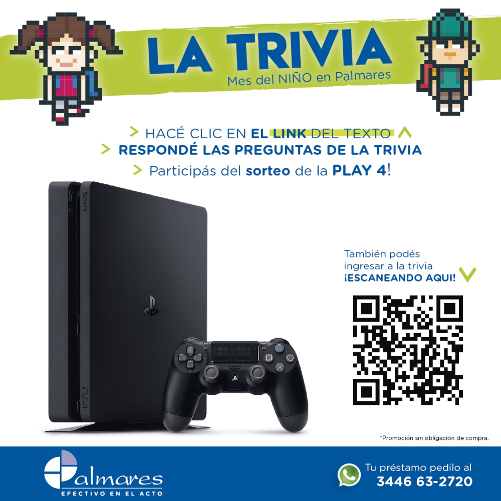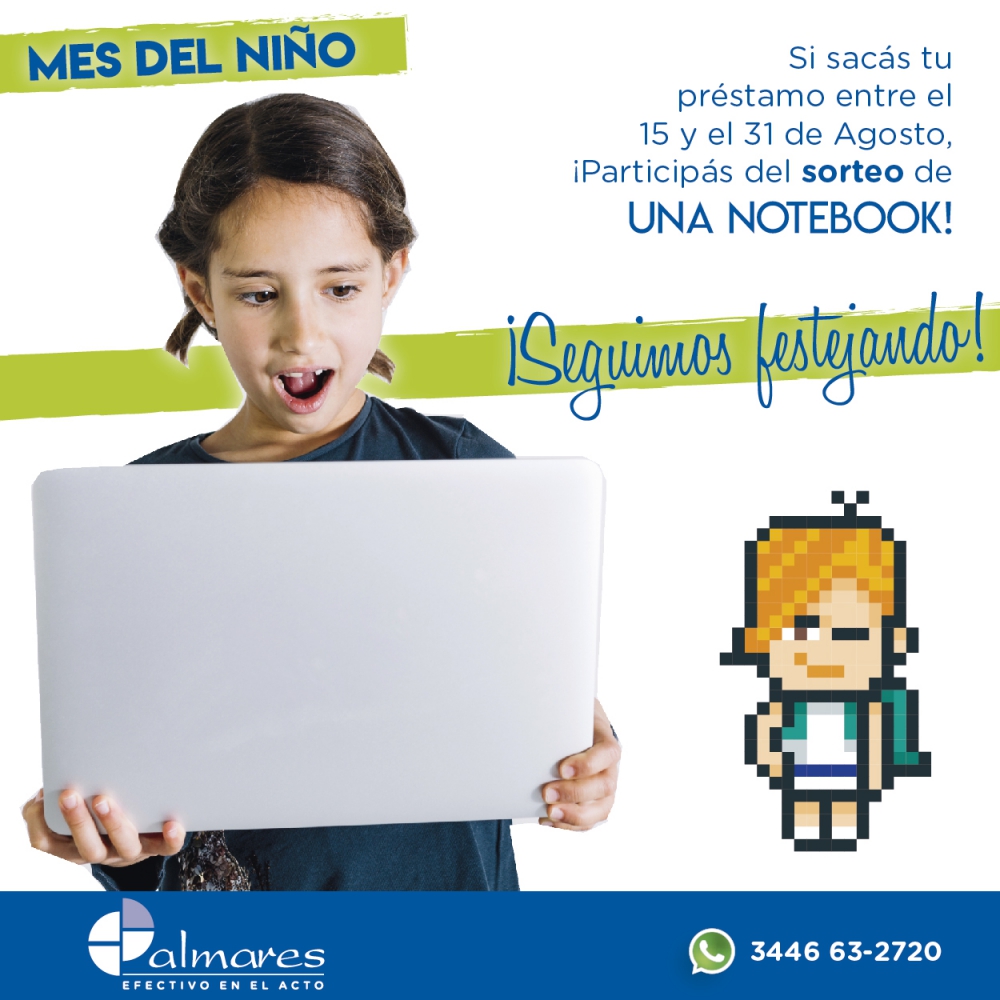 El mes del niño se celebra en Palmares, y este año tan especial, quisimos dar más motivos de alegría para nuestros clientes con dos grandes sorpresas: en una primera instancia, convocamos a la comunidad a participar de la "Trivia del Día del niño" donde propusimos contestar preguntas de género infantil y así­ participar del sorteo de una Play 4. Y en la segunda etapa, todos los clientes que tomaban préstamos en Palmares, participaban del sorteo de una Notebook. Un mes de alegría para los más peques de la casa